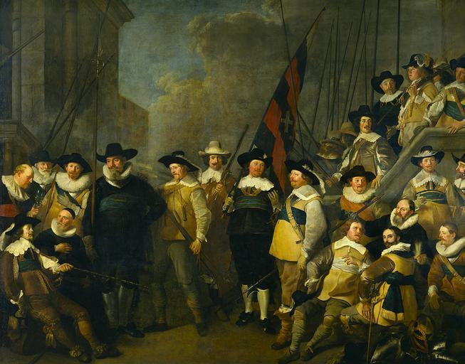 | Keywords: Officieren en andere schutters van wijk V in Amsterdam onder leiding van kaptein Cornelis de Graeff en luitenant Hendrick Lauwrensz.png Artwork Creator Jacob Adriaensz Backer title Officers and other members of the militia of district V in Amsterdam led by Captain Cornelis de Graeff and Lieutenant Hendrick Lauwrensz Officieren en andere schutters van wijk V in Amsterdam onder leiding van kaptein Cornelis de Graeff en luitenant Hendrick Lauwrensz <ref name RMA >https //www rijksmuseum nl/collectie/SK-C-1174 Officieren en andere schutters van wijk V in Amsterdam onder leiding van kaptein Cornelis de Graeff en luitenant Hendrick Lauwrensz - Rijksmuseum Amsterdam - Nationaal Museum voor Kunst en Geschiedenis </ref> Alternate titles The arquebusiers' civic guard company of Captain Cornelis de Graeff and Lieutenant Hendrik Lauwrensz Amsterdam 1642 <ref>https //www rijksmuseum nl/collectie/SK-C-1174 Officieren en andere schutters van wijk V in Amsterdam onder leiding van kaptein Cornelis de Graeff en luitenant Hendrick Lauwrensz - Rijksmuseum Amsterdam - National Museum for Art and History </ref> <br />Officers and men of the Company of captain Cornelis de Graeff and lieutenant Hendrick Lauwrensz <ref>http //ahm adlibsoft com/ahmonline/advanced/dispatcher aspx action search database ChoiceCollect search priref 38429 ahm collectie online research</ref> Officieren en manschappen van de compagnie van kapitein Cornelis de Graeff en luitenant Hendrick Lauwrensz <ref>http //www rkd nl/rkddb/dispatcher aspx action search database ChoiceImages search priref 2004 RKDimages Kunstwerknummer 2004 </ref> <br />Officieren en manschappen van de Compagnie Kloveniers van kapitein Cornelis de Graeff en luitenant Hendrick Lauwrensz Amsterdam 1642 <ref name RMA /> <br />Schutters van de compagnie van kapitein Cornelis de Graeff en luitenant Hendrick Lauwrensz <ref>http //ahm adlibsoft com/ahmonline/advanced/dispatcher aspx action search database ChoiceCollect search priref 38429 ahm collectie online research</ref> 1642 Oil on canvas cm 367 511 LangSwitch Officers and other members of the militia of district V in Amsterdam lead by Captain Cornelis de Graeff and Lieutenant Hendrick Lauwrensz The people portrayed are Officieren en andere schutters van wijk V in Amsterdam onder leiding van kaptein Cornelis de Graeff en luitenant Hendrick Lauwrensz De geportretteerden zijn Cornelis de Graeff Hendrick Lauwrensz Joachim Jansz Scheepmaker cornet Teunis Jansen Visch Jan Gerritsz van Leeuwaerden sergeants Marten Canter Hans van der Elst Warnar Wiggertzen Adam Gerritzen Hendrick Janzen Hendrick Rijckzen Elias de Haes Cornelis Cornelissen Karseboom Barent van Bruyninckwinckel Willem Janzen van Middelum hendrick Pauwels Jan Gerritzen Parys Gerrit Brauningh Koeckebacker Hendrick Aertzen de Keyzer Jan Jacobsz Lantsman Willem Janzen Buys Jan Evertzen van Heerden Jan Evertzen Mattys JAB 1642 monogram and date center right none Object history ProvenanceEvent 1642 commission LangSwitch the arquebusiers ™ civic guard de Kloveniersdoelen Singel Amsterdam from 1642 Grote Zaal Kloveniersdoelen Amsterdam transfer LangSwitch the Kleine Krijgskamer Town Hall Amsterdam de Kleine Krijgskamer Stadhuis Amsterdam or 1925 1926-12 loan LangSwitch das the au het Rijksmuseum Amsterdam inv SK-A-1174 LangSwitch die Stadt Amsterdam the city of Amsterdam la ville d'Amsterdam de stad Amsterdam loan LangSwitch das the au het Amsterdam Museum Amsterdam inv SA 7284 LangSwitch die Stadt Amsterdam the city of Amsterdam la ville d'Amsterdam de stad Amsterdam www rijksmuseum nl http //www rijksmuseum nl/ lang en Home https //www rijksmuseum nl/collectie/SK-C-1174 Info https //www rijksmuseum nl/assetimage2 jsp id SK-C-1174 Pic SA 7284 Other versions <gallery> File The arquebusiers ™ civic guard company of captain Cornelis de Graeff and lieutenant Hendrik Lauwerszn in Amsterdam 1642 by Studio of Jacob Adriaensz Backer jpg </gallery> http //ahm adlibsoft com/ahmonline/advanced/dispatcher aspx action search database ChoiceCollect search priref 38429 ahm collectie online research<br /> SK-C-1174 2004 PD-old-100 LangSwitch Notes Noten <references /> Cornelis de Graeff Militia paintings in the Amsterdam Museum Backer Jacob Adriaensz 1642 paintings Flags of Amsterdam Paintings by Jacob Adriaensz Backer 1642 Group portraits with many people Paintings by Jacob Adriaensz Backer in the Rijksmuseum Amsterdam |