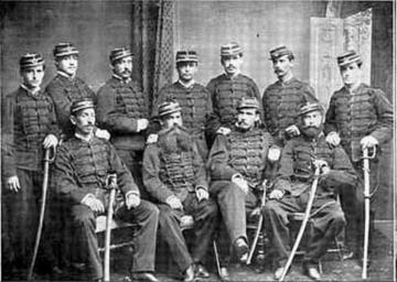 | Keywords: OficialidaddelRegimientoCazadores2.jpg es Oficialidad del Regimiento Cazadores Comandante y oficiales del escuadrón del Regimiento Cazadores a Caballo que quedó guarneciendo a Lima después del regreso a Chile de las tropas al mando de Baquedano En la foto tomada en Lima en 1881 aparecen de pie de izquierda a derecha alférez Roberto López alférez Agripino Vargas alférez Carlos F Mebold teniente Agustín Almarza teniente Pedro J Palacios alférez Aníbal Muñoz y alférez Rafael Casanueva Sentados en el mismo orden capitán Abel P Ilabaca capitán Belisario Amor sargento mayor y comandante Sofanor Parra y capitán Gonzalo Lara Tomado del blog de Jonatan Saona http //gdp1879 blogspot com/2013/05/cazadores-caballo html ixzz3JQJWJUgC 2012-11-30 16 25 34 http //www elgrancapitan org/foro/viewtopic php f 45 t 6418 author PD-Art Uploaded with UploadWizard Regimiento Cazadores a Caballo GdP |