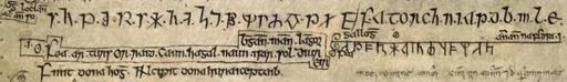 | Keywords: Ogham futhark ballymote.png ogam lochlannach andso Scandinavian Ogham here Description of the Younger Futhark as Viking Ogham in the Book of Ballymote AD 1390 F U Th A R K H NA S T B MLR f a t o r c h n i a s d b m l e galoga -- anmand na feda i fea ar turs or raid caun hagal naun isar sol diur bangann mann langor eir Viking Ogham names of the letters PD-Art Book of Ballymote Artworks missing infobox template | ||||