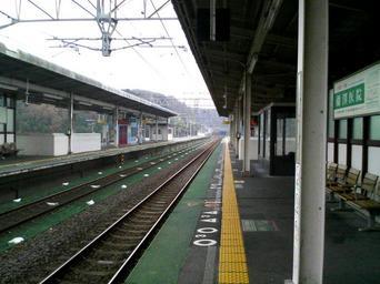 Keywords: Ogoto station platform-20071221.jpg JR Ogoto Station platform JR雄琴駅(現 はおごと温泉駅に改称)のホームを撮影 右のホームが1・2番のりば 左のホームが3・4番のりばで 画像奥が京都方 Own work 人撮影 2007-12-21 Marikino2522 35 5 51 05 N 135 53 42 17 E heading SSW Ogoto Onsen Station