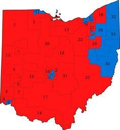 MAKE A MEME View Large Image Ohio Senate districts, party colors (2011-2013), labeled.svg en 2011-2013 own TIGER data Ibagli 2011-03-17 Cc-zero Election maps of Ohio