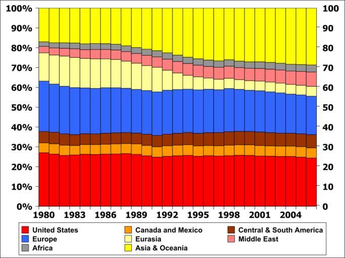 | Keywords: Oil consumption per day by region from 1980 to 2006 solid2.svg en Oil consumption as percentage per region from 1980 to 2006; vertical bars indicate percentage of world total oil consumption and the horizontal scale shows years from 1980 to 2007 original text 1 I 84user created this work using the excel file RecentPetroleumConsumptionBarrelsperDay xls from the U S Energy Information Administration's web page http //tonto eia doe gov/dnav/pet/pet_pri_wco_k_w htm direct link http //www eia doe gov/emeu/international/RecentPetroleumConsumptionBarrelsperDay xls and using Open Source Gnumeric 1 9 1 to produce the chart Related images en Image Oil consumption per day by region from 1980 to 2006 solid3 svg - same chart but without vertical lines 2008-10-24 <br/> original text 1 2008-10-24 84user talk 84user self original upload log en wikipedia 84user CommonsHelper page en wikipedia Oil_consumption_per_day_by_region_from_1980_to_2006_solid2 svg 2008-10-24 21 59 84user 600×450× 137162 bytes <nowiki> Oil consumption as percentage per region from 1980 to 2006; vertical bars indicate percentage of world total oil consumption and the horizontal scale shows years from 1980 to 2007 I 84user created this work using the</nowiki> Area charts Consumption Economic trends Petroleum statistics |