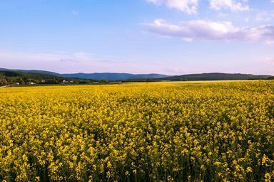 Keywords: oilseed rape field of rapeseeds yellow flowers spring sky field of flowers clouds bright arable rape blossom field rare plant agriculture crop eifel pp county ahr valley