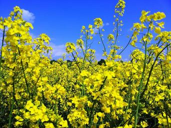 Keywords: oilseed rape field of rapeseeds sky clouds yellow sunny blue rape blossom