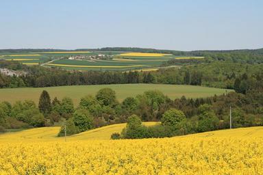 Keywords: oilseed rape nature yellow field of rapeseeds summer hiking fields agriculture bright rape blossom