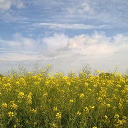 Keywords: oilseed rape sky clouds yellow field pasture summer spring landscape