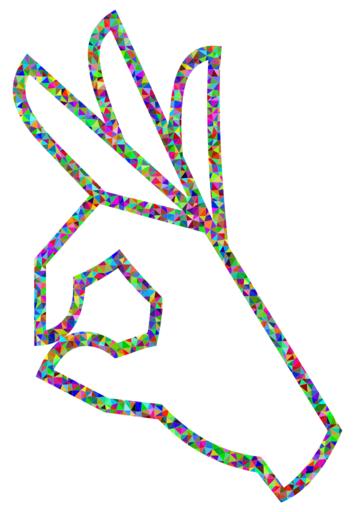 Keywords: ok hand sign perfect emoji approve condone support like love agree colorful prismatic chromatic rainbow triangles triangular low poly polygon abstract geometric art vector svg