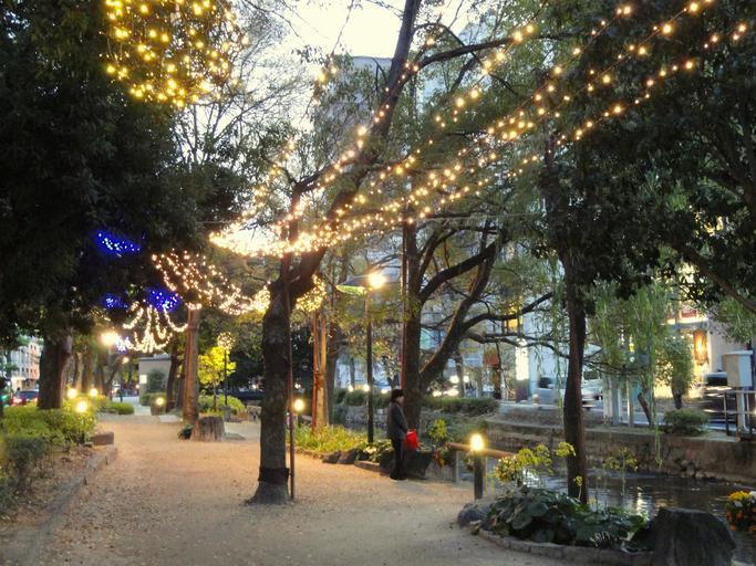 Keywords: okayama city japan urban architecture cities city decorative lights buildings traffic streets sidewalk