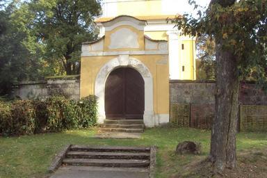 Keywords: Okna portál.JPG cs Portál před kostelem v Oknech own Zákupák 2013-10-05 Church of the Assumption of the Virgin Mary Okna Gates in Liberec Region Outside stairs in the Czech Republic