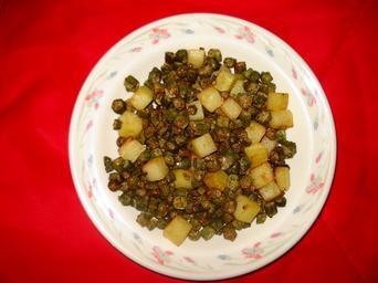 Keywords: Okra Fry With Potatoes.JPG en Bhindi Fry With Aaloo own Miansari66 Cc-zero Cuisine of Pakistan Cuisine of Punjab India made by User Miansari66 Dishes of India Cuisine of Karachi Okra dishes