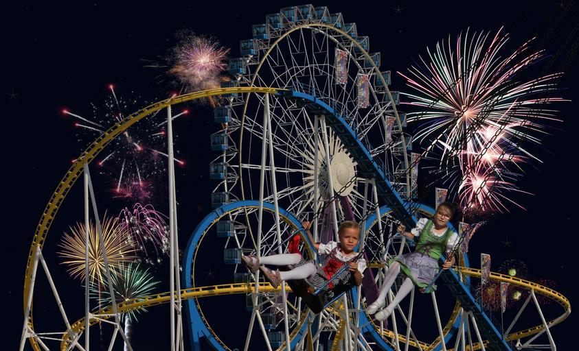 Keywords: oktoberfest ferris wheel roller coaster ride fireworks fun pleasure speed dedication folk festival