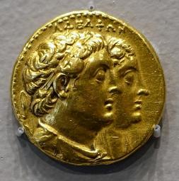 | Keywords: Oktodrachm (Mnaieion) of Ptolemy II, obverse, Jugate bugs of Ptolemy II and Arsinoe II Philadelphoi, Alexandria, after 272 BC, gold - Arthur M. Sackler Museum, Harvard University - DSC01462.jpg en Exhibit in the Arthur M Sackler Museum Harvard University Cambridge Massachusetts USA This artwork is in the public domain because the artist died more than 70 years ago 2015-04-11 12 38 50 own Daderot other versions PD-old-70 cc-zero Oktodrachm of Ptolemy II and Arsinoe II Ancient Egyptian art in the Arthur M Sackler Museum Coins in the Arthur M Sackler Museum |
