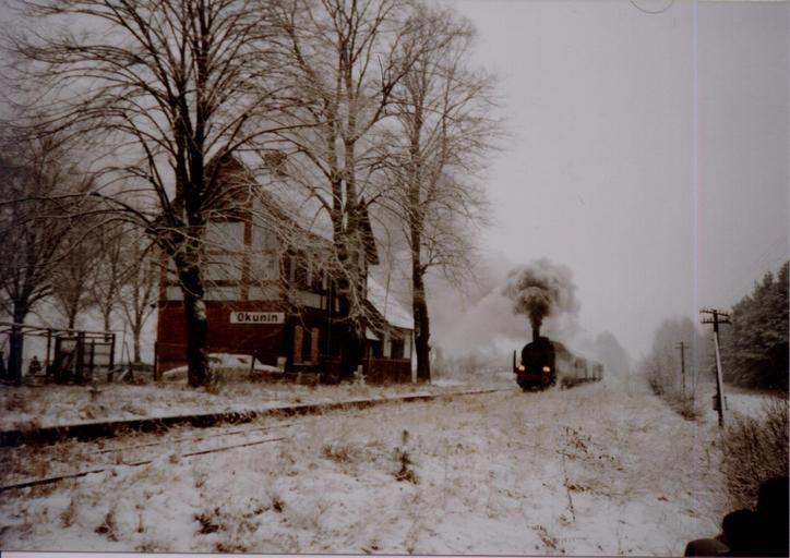 | Keywords: Okunin 20001231.jpg Nostalgic steam train for railfans at Okunin station between Wolsztyn and Sulechów; there are no regular trains along this route own 2000-12-31 Jan Pešula Sapfan Okunin Train stations in Lubusz Voivodeship Okunin Railway line 357 Poland Okunin |