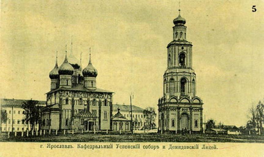 | Keywords: Old Assumption Cathedral in Yaroslavl 002.jpg ru Ста ый Я ославль Успенский собо За ним - Демидовский ю идический лицей http //wwwwin yaroslavl ru/Yaroslavl/postcar html Author ачало XX века File Ста ый Я ославль Успенский собо и Демидовский лицей jpg PD-old Postcards of Yaroslavl of the Russian Empire Cathedral of the Dormition Yaroslavl pre-1937 building Demidov Lyceum | ||||