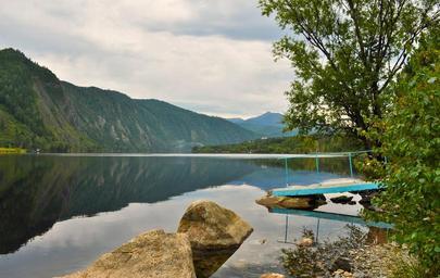 Keywords: river beach mountains bridges trees branches leaves grass water lake reflection rocks summer landscape travel tourism vacation