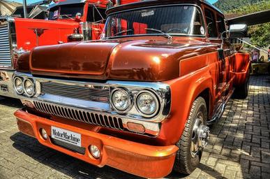 Keywords: old car old timer motormachine motor orange color chrome truck
