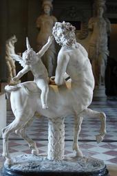 | Keywords: Old Centaur Eros Louvre Ma 562.jpg Old Centaur teased by Eros Roman copy 1st “2nd centuries AD of a Greek original of the 2nd century BC Marble found in Rome in the 17th century belonged to the Borghese collections A grey-black marble statue of the same type was found in the Villa Adriana in Tivoli together with a grey-black marble Young Centaur laughing at Eros's wounds The pair now shown in the Capitoline Museums bear the signature of Aristeas and Papias of Aphrodisias a city in Asia Minor It can surmised that the Louvre statue was an element from a pair as well Centaure chevauché par l'amour Copie romaine d'époque impériale Ier “IIe siècle ap J -C d'un original grec du IIe siècle av J -C Marbre découvert à Rome au XVIIe siècle ancienne collection Borghèse Une statue du même type en marbre gris-noir a été trouvée à la villa Adriana en même temps qu'un Jeune Centaure se riant des blessures d'Éros également en marbre gris-noir On peut supposer que l'exemplaire du Louvre faisait également partie d'une paire H 1 47 m 4 ft 9 ¾ in L 1 07 m 3 ft 6 in W 52 cm 20 ¼ in Museum Louvre Department of Greek Etruscan and Roman Antiquities Sully wing ground floor room 17 object history credit line Borghese Collection; purchase 1807 accession number Ma 562 MR 122 Jastrow 2006 other versions <gallery> Image Old Centaur Eros Louvre Ma 562 detail jpg Image Old Centaur Eros Louvre Ma 562 n3 jpg Image Old Centaur Eros Louvre Closeup jpg </gallery> Statues of Eros Roman copies after Greek originals in the Louvre Greek antiquities in the Louvre - Room 17 Young and Old Centaurs Borghese Collection Aristeas |