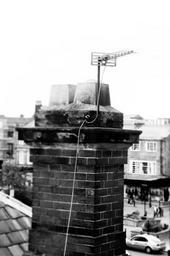 Keywords: old chimney brick architecture tv antenna black white macro detail art background