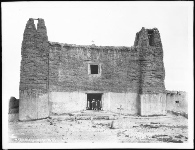 Keywords: Old church at the Acoma Pueblo, New Mexico, ca.1900 (CHS-4540).jpg en <br> Old church at the Acoma Pueblo New Mexico ca 1900 Photograph of the old church at the Acoma Pueblo New Mexico ca 1900 The old church is constructed from adobe brick Two bell towers flank the main entry over which a small cross stands on the roof Another cross stands on small adobe pedestal in front of the church The rafter tails on the lower part of the church at right are exposed Stucco covers only the lower half of the structure the upper half consisting of exposed brick Five people stand near the church entry Some shrubs grow sparsely in front of the church Call number CHS-4540 Photographer James George Wharton Filename CHS-4540 Coverage date circa 1900 Part of collection California Historical Society Collection 1860-1960 Type images Geographic subject city or populated place Acoma Pueblo Repository name USC Libraries Special Collections Accession number 4540 Microfiche number 1-160-42 Archival file chs_Volume96/CHS-4540 tiff Part of subcollection Title Insurance and Trust and C C Pierce Photography Collection 1860-1960 Repository address Doheny Memorial Library Los Angeles CA 90089-0189 Geographic subject country USA Format aacr2 4 photographs transparency photonegative photoprint b w ; 20 x 25 cm 17 x 22 cm Rights Digitally reproduced by the USC Digital Library; From the California Historical Society Collection at the University of Southern California Subject adlf religious facilities Project USC Repository email specol usc edu Contributing entity California Historical Society Date created circa 1900 Publisher of the digital version University of Southern California Libraries Format aat transparencies; negatives photographic ; photographic prints; photographs Geographic subject state New Mexico Legacy record ID chs-m16875; USC-1-1-1-13461 Access conditions Send requests to address or e-mail given Phone 213 821-2366; fax 213 740-2343 Subject file heading Indians -- Acoma Subject lcsh Indians of North America; Acoma Indians Subject Acoma Indians; Acoma; Acoma Indians circa 1900 date created George Wharton James 1858 1923 http //digitallibrary usc edu/cdm/ref/collection/p15799coll65/id/16797 PD-old-70-1923 Images from USC Digital Library uploaded by Fæ Photographs by George Wharton James California Historical Society Collection 1860-1960 Acoma Pueblo |