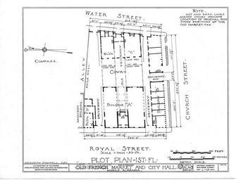 | Keywords: Old City Hall Mobile 4.jpg Southern Market Municipal Building 107-115 South Royal Street Mobile Mobile County AL Plot plan Historic American Buildings Survey Library of Congress Prints Photographs Division HABS or HAER or HALS Reproduction number HABS ALA 49-MOBI 4- 1935-04-12 Kenneth Engwall PD-USGov http //hdl loc gov/loc pnp/hhh al0426 Old City Hall Mobile Alabama |