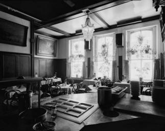| Keywords: Old Ebbitt Grill Old F Street Location second floor breakfast room south 1967.jpg en Looking south at the Breakfast Room on the second floor of the Old Ebbitt Grill located at 1427 F Street NW Washington D C United States Old Ebbitt Grill was originally a restaurant which existed as part of the Ebbitt House hotel which was established in 1856 The hotel was located on the southeast corner of F Street and 14th Street in Washington D C The original hotel was razed in 1872 and a newer much larger hotel with a greatly expanded and much more luxurious dining room built The dining room was significantly renovated in 1910 Ebbitt House closed in 1925 and the restaurant's furnishings were purchased by Anders R Lofstrand Sr a local restauranteur and veteran bar owner The Old Ebbitt Grill restaurant was moved to 1427 F Street NW Lofstrand occupied all four floors of this existing building The restaurant passed into the hands of the Clyde's Restaurant Group in 1970 after a tax auction In 1977 the building was demolished to make way for the Metropolitan Square development However Old Ebbitt Grill re-established itself on the northwest corner of Metropolitan Square at 675 15th Street NW It remains in existence as of 2012 and is the oldest bar and restaurant in the city http //www loc gov/pictures/item/dc0193/ Historic American Buildings Survey Prints and Photographs Division Library of Congress 1967 PD-USGov-Interior-HABS Old Ebbitt Grill 1926 location |