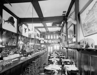 | Keywords: Old Ebbitt Grill Old F Street Location first floor looking south 1967.jpg en Looking south through Barroom on the first floor of the Old Ebbitt Grill located at 1427 F Street NW Washington D C United States Old Ebbitt Grill was originally a restaurant which existed as part of the Ebbitt House hotel which was established in 1856 The hotel was located on the southeast corner of F Street and 14th Street in Washington D C The original hotel was razed in 1872 and a newer much larger hotel with a greatly expanded and much more luxurious dining room built The dining room was significantly renovated in 1910 Ebbitt House closed in 1925 and the restaurant's furnishings were purchased by Anders R Lofstrand Sr a local restauranteur and veteran bar owner The Old Ebbitt Grill restaurant was moved to 1427 F Street NW Lofstrand occupied all four floors of this existing building The restaurant passed into the hands of the Clyde's Restaurant Group in 1970 after a tax auction In 1977 the building was demolished to make way for the Metropolitan Square development However Old Ebbitt Grill re-established itself on the northwest corner of Metropolitan Square at 675 15th Street NW It remains in existence as of 2012 and is the oldest bar and restaurant in the city http //www loc gov/pictures/item/dc0193/ Historic American Buildings Survey Prints and Photographs Division Library of Congress 1967 PD-USGov-Interior-HABS Old Ebbitt Grill 1926 location |