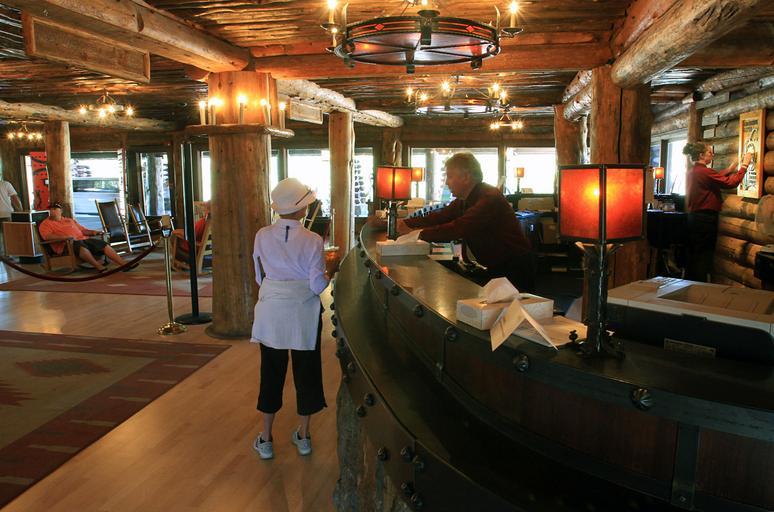 | Keywords: old faithful inn oldfaithfulinn registration desk registrationdesk front desk frontdesk visitors summer yellowstone national park wyoming Old Faithful Inn registration desk; Jim Peaco; July 2013 Old Faithful Inn registration desk; Jim Peaco; July 2013 |