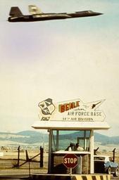| Keywords: Old Gate, Beale AFB.jpg en An SR-71 Blackbird flies over the the old gate at Beale Air Force Base circa 1970s Courtesy photo/9th Reconnaissance Wing 2012-11-16 08 05 38 http //www flickr com/photos/airmanmagazine/8515663991/sizes/o/ U S Air Force PD-USGov Uploaded with UploadWizard Aircraft at Beale Air Force Base SR-71 Blackbird in flight |