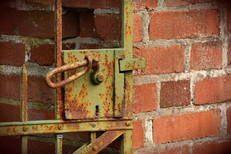 Keywords: old gate castle rusty input rusted iron door door handle wall brick iron closed