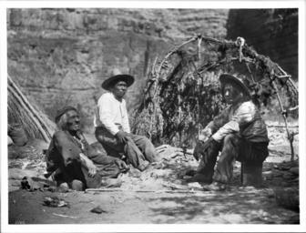 | Keywords: Old Havasupai Indian man telling stories to two other men sitting around a campfire, ca.1899 (CHS-3790).jpg en <br> Old Havasupai Indian man telling stories to two other men sitting around a campfire ca 1899 Photograph of an old Havasupai Indian man telling stories to two other men sitting around a campfire ca 1899 He sits crosslegged on the ground at left The other two men sit on small objects a rock a box close to the ground They both wear hats; whereas the old man wears a cloth wrapped around his head Behind them stands the rough lattice wood framework of a small dome-shaped structure A vertical canyon wall is in the background Call number CHS-3790 Photographer James George Wharton Filename CHS-3790 Coverage date circa 1899 Part of collection California Historical Society Collection 1860-1960 Type images Part of subcollection Title Insurance and Trust and C C Pierce Photography Collection 1860-1960 Repository name USC Libraries Special Collections Format glass plate negatives Microfiche number 1-167- Archival file chs_Volume95/CHS-3790 tiff Repository address Doheny Memorial Library Los Angeles CA 90089-0189 Geographic subject country USA Format aacr2 2 photographs glass photonegative photoprint b w ; 17 x 22 cm Rights Digitally reproduced by the USC Digital Library; From the California Historical Society Collection at the University of Southern California Subject adlf tribal areas Project USC Accession number 3790 Repository email specol usc edu Contributing entity California Historical Society Date created circa 1899 Publisher of the digital version University of Southern California Libraries Format aat photographic prints; photographs Legacy record ID chs-m16375; USC-1-1-1-13517 Access conditions Send requests to address or e-mail given Phone 213 821-2366; fax 213 740-2343 Subject file heading Indians -- Havasupai Subject lcsh Indians of North America; Havasupai Indians; Men; Storytellers; Clothing and dress Subject Havasupai Indians circa 1899 date created James George Wharton http //digitallibrary usc edu/cdm/ref/collection/p15799coll65/id/16314 PD-old-70-1923 Images from USC Digital Library uploaded by Fæ California Historical Society Collection 1860-1960 Glass plate negatives Havasupai Photographs by George Wharton James |