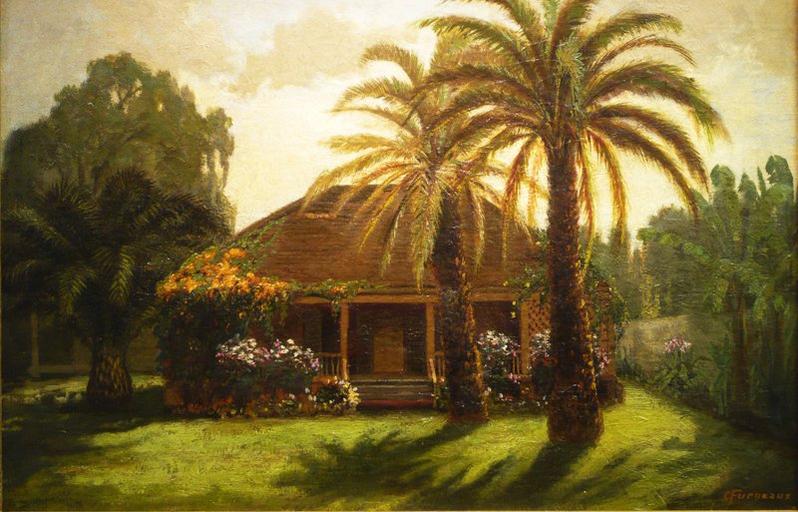 | Keywords: 'Old Hilo House' by Charles Furneaux, c.1890.jpg en Old Hilo House by Charles Furneaux c 1890 oil on canvas 18 x 24 in Michael D Horikawa Fine Art Honolulu Hawaii Charles Furneaux ~ 1890 PD-old-auto-1923 1913 Charles Furneaux Paintings of Hawaii island Historical images of Hilo Hawaii Hale Pili |