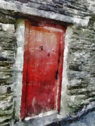 Keywords: old red door stone wall architecture entrance painting