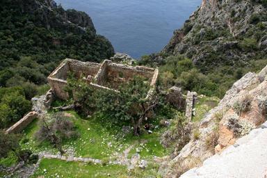 Keywords: old ruins stone turkey building ancient architecture travel ruined brick outdoor wall house person tourism abandoned landmark history historical culture summer blue sky hills rubble attraction landscape tourist sea water