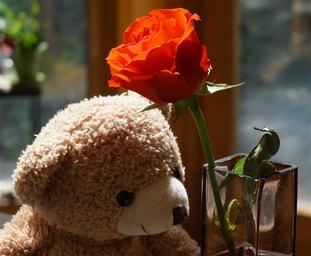 Keywords: old teddy bear with rose teddy bear toy stuffed animal orange rose rose flower blossom bloom nature garden colorful orange