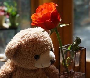 Keywords: old teddy bear with rose teddy bear toy stuffed animal orange rose rose flower blossom bloom nature garden colorful orange