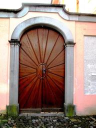 Keywords: old town bischofszell town hall entrance to the yard wood structures archway below bemoost paving stones thurgau switzerland