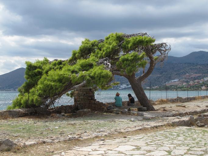 Keywords: old tree clouds old tree sky nature green blue sea greece plant summer mediterranean idyllic