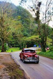 Keywords: oldtimer red metallic auto road cruiser nature cuba cuban holiday