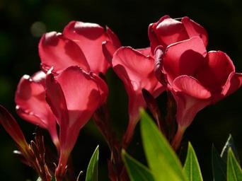 Keywords: oleander bush nerium oleander laurel rose dog gift greenhouse apocynaceae flower blossom bloom red ornamental shrub back light close macro