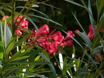 Keywords: oleander bush nerium oleander laurel rose dog gift greenhouse apocynaceae flower blossom bloom red ornamental shrub back light