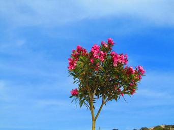 Keywords: oleander red bäumchen flowers pink blue sky