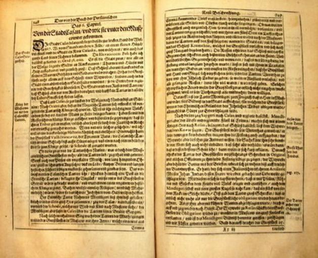 | Keywords: OleariusManuscript.jpg ru Глава из книги Адама Олеа ия «Описание путешествия голштинского посольства в осковию и Пе сию» de Doppelseite aus Adam Olearius Moskowitische und persische Reise 1647 http //museum rosneft ru/past/chrono/year/1639/ Creator Adam Olearius 1639 comment 1639 is unlikely since first edition came out in 1647 Left page seems to be identical with one page in enlarged 1656 edition viz http //diglib hab de/wdb php dir drucke/263-2-hist-2f pointer 427 PD-old Adam Olearius |
