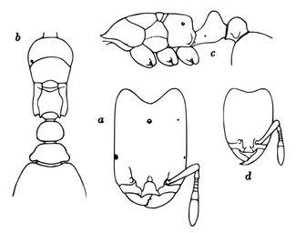 | Keywords: Oligomyrmex.panamensis.-.wheeler.svg Oligomyrmex panamensis a head of soldier or ergatoid dorsal aspect; b thorax and pedicel of same dorsal aspect; c same in profile; d head of worker dorsal aspect A new guest-ant and other new Formicidae from Barro Colorado Island Panama Biological Bulletin 49 150-181 http //research amnh org/entomology/social_insects/ants/publications/3382/3382 pdf PDF 1925 W M Wheeler pd-old PD-old Drawings of animals by William Morton Wheeler Drawings of ants Oligomyrmex panamensis |