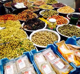 Keywords: olives market food mediterranean vegetable green vegetarian snack outdoor mouthwatering