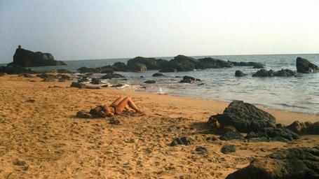 Keywords: Om beach gokarna sun bathing.JPG en A lady sunbathing in om beach own Axis of eran Public domani Cc-zero Check categories 2011 April 29 en wikipedia Gokarna _India 1 Om Beach