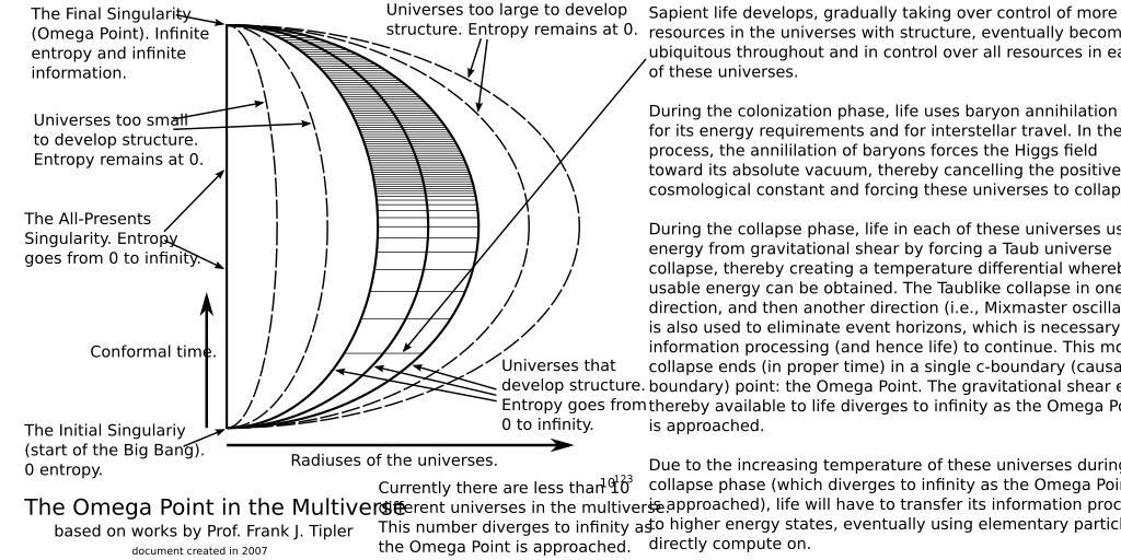 Keywords: Omega-Point-Multiverse.svg Wikipedia's software currently doesn't render the above SVG file at all well whereas Inkscape and the GIMP do hence the reason the following Inkscape conversion to PNG from the SVG file was uploaded here Omega-Point-Multiverse png I am the author This is a diagram of the multiverse formulation of the Omega Point although note that the physics of the actual Omega Point aren't dependant on a multiverse conception Based upon the below works by Prof Frank J Tipler Frank J Tipler The Physics of Christianity New York Doubleday 2007 ISBN 0385514247 F J Tipler http //math tulane edu/~tipler/theoryofeverything pdf The structure of the world from pure numbers Reports on Progress in Physics Vol 68 No 4 April 2005 pp 897-964 See also http //adsabs harvard edu/abs/2005RPPh 68 897T here Also released as http //arxiv org/abs/0704 3276 Feynman-Weinberg Quantum Gravity and the Extended Standard Model as a Theory of Everything arXiv 0704 3276 April 24 2007 Frank Tipler http //www geocities com/theophysics/tipler-omega-point-and-christianity html The Omega Point and Christianity Gamma Vol 10 No 2 April 2003 pp 14-23; note that the foregoing version corrects character formatting errors of the versions available http //web archive org/web/20031113125255/http //home worldonline nl/~sttdc/tipler htm here http //home worldonline nl/~sttdc/tipler htm here and http //home tiscali nl/~sttdc/tipler htm here For the version in Dutch see http //web archive org/web/20040205030349/http //home worldonline nl/~sttdc/jrg10_nr2_p1423 htm Het Punt Omega en het christendom Gamma Jrg 10 Nr 2 April 2003 pp 14-23; also available http //home tiscali nl/~sttdc/jrg10_nr2_p1423 htm here Frank J Tipler http //arxiv org/abs/astro-ph/0111520 Genesis How the Universe Began According to Standard Model Particle Physics arXiv astro-ph/0111520 November 28 2001 See http //www geocities com/theophysics/tipler-diagrams html Frank J Tipler Diagrams Theophysics Frank J Tipler The Physics of Immortality Modern Cosmology God and the Resurrection of the Dead New York Doubleday 1994 ISBN 0198519494 Figures V 4 pg 171 and VI 1 pg 184 en wikipedia Liftarn CommonsHelper 2007-08-17 Jamiemichelle wikipedia en Jamiemichelle Original upload log page en wikipedia Omega-Point-Multiverse svg 2007-08-17 02 57 Jamiemichelle 1424×712× 34855 bytes <nowiki>I am the author This is a diagram of the multiverse formulation of the Omega Point although note that the physics of the actual Omega Point aren't dependant on a multiverse conception Based upon the below works by Prof </nowiki> Multiverse SVG diagrams in English |