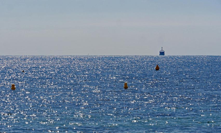Keywords: on the high seas horizon mediterranean buoys motor yacht back light blue waters ship water sea wave light côte d ' azur south of france yacht