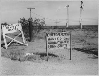 Keywords: labor u.s. national archives usnationalarchives nara:arcid=522289 cotton harvest cottonharvest maricopa county, arizona maricopacountyarizona migratory workers migratoryworkers highway 80 highway80 arizona cotton cotton pickers cottonpickers help wanted signs helpwantedsigns seasonal laborers seasonallaborers blackandwhite monochrome outdoor black and white Original Caption: "On Highway 80, Maricopa County, Arizona. Ranch advertisement during cotton harvest. Highway signs reading "cotton pickers wanted" are but the last stage in the process of attracting seasonal laborers to Arizona from areas as remote as Yakima Valley, Washington, and the bootheel of Missouri." U.S. National Archives’ Local Identifier: NWDNS-83-G-44120 From: Series: Photographic Prints Documenting Programs and Activities of the Bureau of Agricultural Economics and Predecessor Agencies (Record Group 83) Created by: Department of Agriculture. Bureau of Agricultural Economics. Division of Economic Information, (ca. 1922 - ca. 1953 ) Production Date: 11/1/1940 Photographer: Lange, Dorothea, 1895-1965 Persistent URL: catalog.archives.gov/id/522289 Repository: Still Picture Records Section, Special Media Archives Services Division (NWCS-S), National Archives at College Park, 8601 Adelphi Road, College Park, MD, 20740-6001. For information about ordering reproductions of photographs held by the Still Picture Unit, visit: www.archives.gov/research/order/still-pictures.html Reproductions may be ordered via an independent vendor. NARA maintains a list of vendors at www.archives.gov/research/order/vendors-photos-maps-dc.html Access Restrictions: Unrestricted Use Restrictions: Unrestricted Original Caption: "On Highway 80, Maricopa County, Arizona. Ranch advertisement during cotton harvest. Highway signs reading "cotton pickers wanted" are but the last stage in the process of attracting seasonal laborers to Arizona from areas as remote as Yakima Valley, Washington, and the bootheel of Missouri." U.S. National Archives’ Local Identifier: NWDNS-83-G-44120 From: Series: Photographic Prints Documenting Programs and Activities of the Bureau of Agricultural Economics and Predecessor Agencies (Record Group 83) Created by: Department of Agriculture. Bureau of Agricultural Economics. Division of Economic Information, (ca. 1922 - ca. 1953 ) Production Date: 11/1/1940 Photographer: Lange, Dorothea, 1895-1965 Persistent URL: catalog.archives.gov/id/522289 Repository: Still Picture Records Section, Special Media Archives Services Division (NWCS-S), National Archives at College Park, 8601 Adelphi Road, College Park, MD, 20740-6001. For information about ordering reproductions of photographs held by the Still Picture Unit, visit: www.archives.gov/research/order/still-pictures.html Reproductions may be ordered via an independent vendor. NARA maintains a list of vendors at www.archives.gov/research/order/vendors-photos-maps-dc.html Access Restrictions: Unrestricted Use Restrictions: Unrestricted