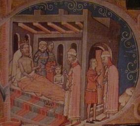 Keywords: Ondra1 postel.jpg en Andrew I of Hungary cs Ondřej I na smrtelné posteli own Acoma century 14 PD-old Chronicon Pictum Andrew I of Hungary Béla I of Hungary