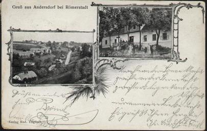 Keywords: Ondřejov na staré pohlednici 04.jpg cs Obec Ondřejov v okrese Bruntál na staré pohlednici before 1945 Soukromá sbírka author other versions Custom license marker 2016 11 04 Anonymous-EU Postcards of Ondřejov Rýmařov